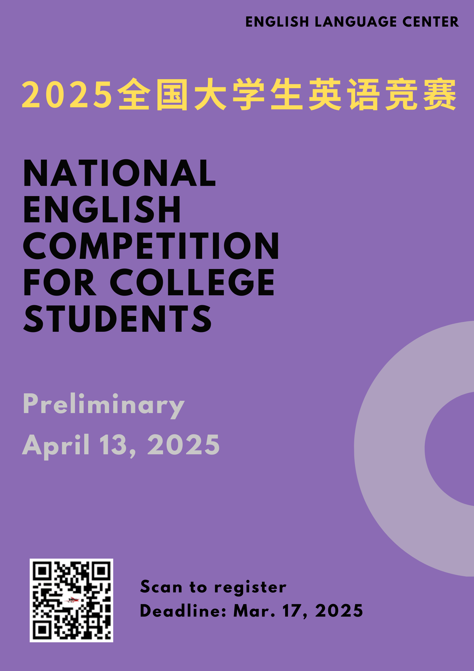 2025全國(guó)大學(xué)生英語(yǔ)競(jìng)賽開(kāi)啟報(bào)名2月193月17-23:59